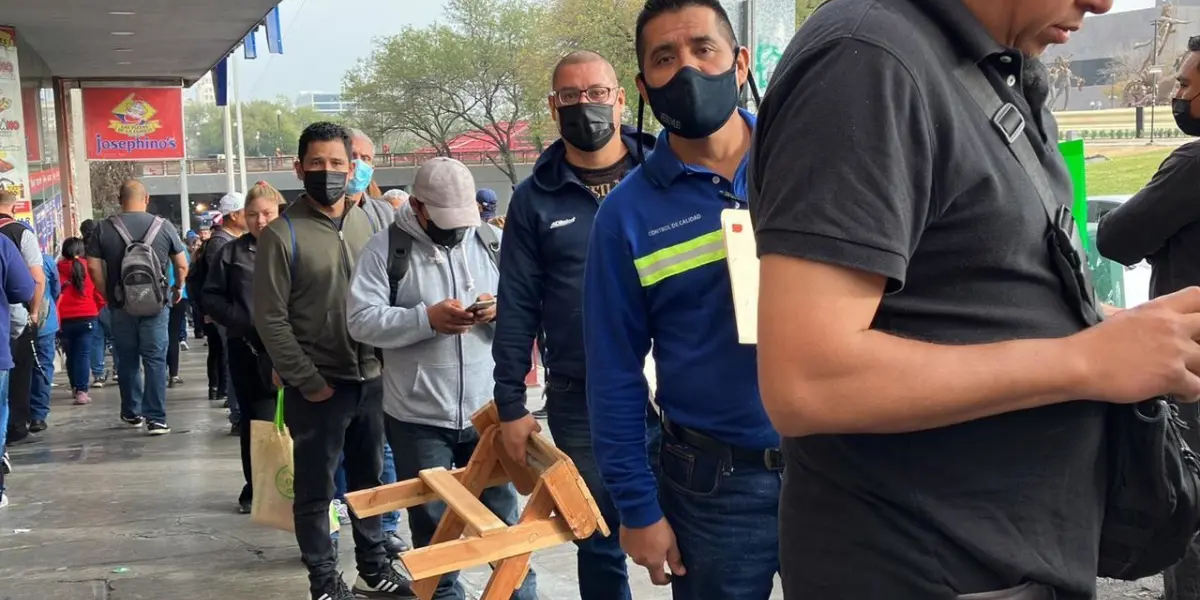 Las filas rodean completamente la calle Zaragoza, Escobedo, Matamoros y Padre Mier, dónde ya más de 500 personas siguen en pie esperando ser atendidas.