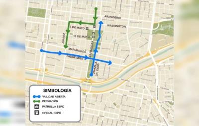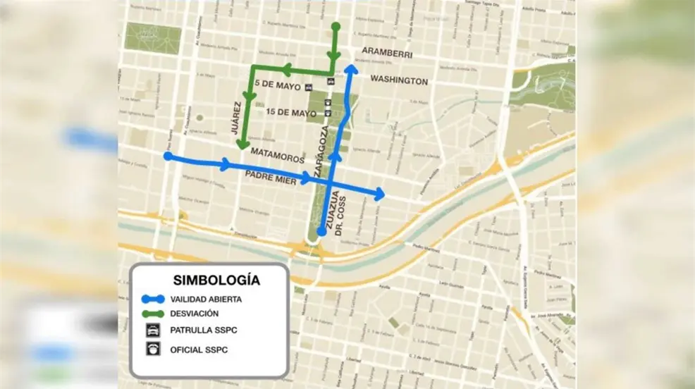 Habrá cierres viales en el cruce de las calles Washington y Zaragoza, y en Escobedo y 5 de Mayo a partir de las 16:00 horas.