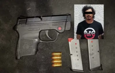 Durante la inspección, se le encontró en posesión de una pistola corta cargada y un cargador adicional.