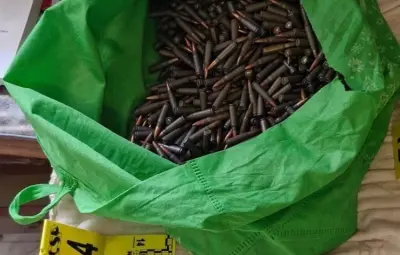 También se encontraron piezas metálicas en una caja dañada, cinco chalecos tácticos, 23 cargadores metálicos, y dos celulares. Además, se decomisaron ocho dispositivos de radiofrecuencia, una bolsa ecológica dañada, y mil 95 cartuchos de calibre 7.62x39 mm.