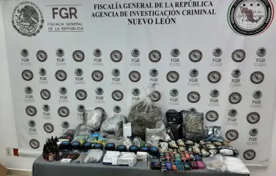 SANTA CATARINA, Nuevo León.- La Fiscalía General de la República (FGR), en colaboración con la Policía Federal Ministerial (PFM) de la Agencia de Investigación Criminal (AIC), realizó un importante aseguramiento de drogas y sustancias prohibidas en una empresa de paquetería en el municipio de Santa Catarina, Nuevo León.