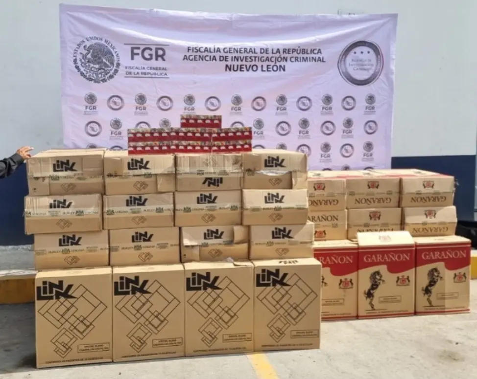 Tras operativos realizados en Apodaca y Guadalupe, la Fiscalía General de la República confiscó más de medio millón de cigarrillos ilegales.