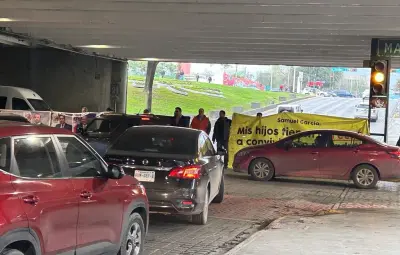 MONTERREY, Nuevo León.- Más de 20 padres de familia de la asociación, “No más hijos rehenes”, bloquean la avenida Zaragoza en el corazón de Monterrey, exigiendo una reunión con el presidente del Poder Judicial de Nuevo León, Arturo Salinas.