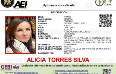 MONTERREY, Nuevo León.- Fue el pasado 28 de febrero del 2024 que familiares y amigos de Alicia Torres Silva tuvieron contacto con ella, y a dos meses de su desaparición siguen en la búsqueda de la mujer de 34 años, en colaboración con las autoridades.