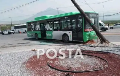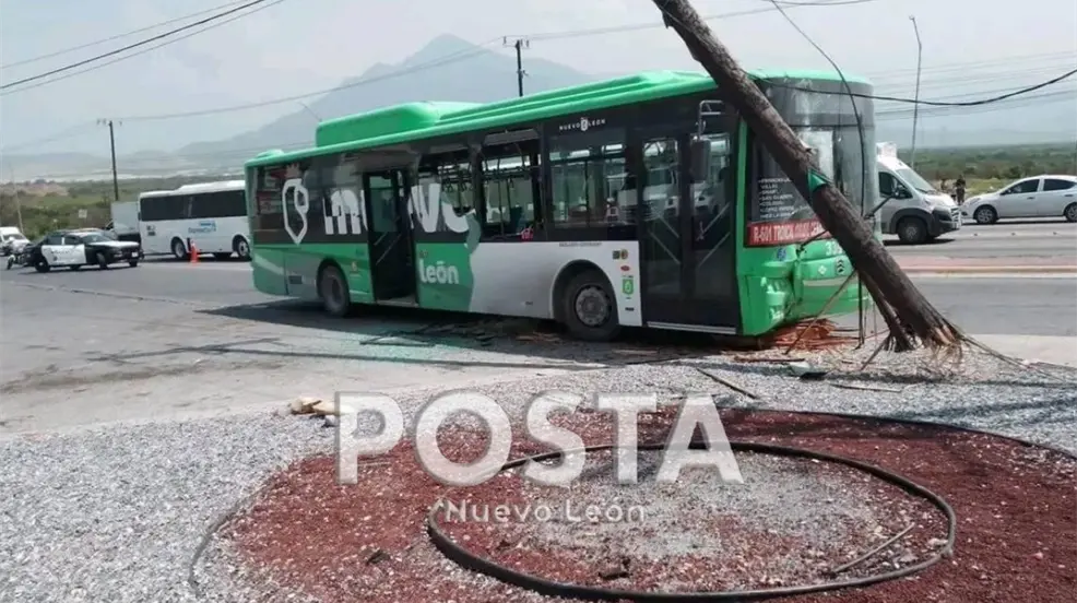 GARCÍA, Nuevo León.- Un camión urbano se estrelló contra un poste, el cual provoca tráfico en la zona, la unidad es del Sistema de Transporte y Movilidad de Nuevo León.