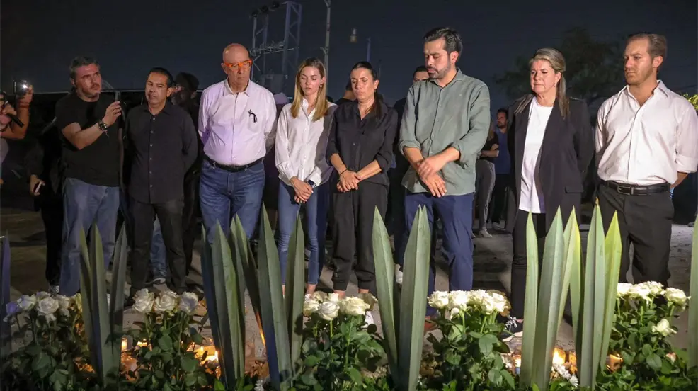 SAN PEDRO GARZA GARCÍA, Nuevo León.- Tras el lamentable incidente en el cierre de campaña de Lorenia Canavati, donde un escenario se desplomó dejando nueve personas fallecidas y más de 190 heridos, la candidata a la alcaldía de San Pedro Garza García por Movimiento Ciudadano, Lorenia Canavati, junto con Jorge Álvarez Máynez, Mariana Rodríguez y Martha Herrera, visitaron el lugar del suceso para rendir honores a las víctimas.