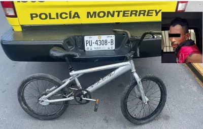 Un hombre que viajaba en una bicicleta fue detenido por oficiales de la Policía de Monterrey, dentro del operativo permanente de vigilancia.
