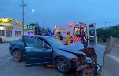 Un auto se estrelló con un muro y terminó lesionado en la Carretera Nacional en el municipio de Linares.