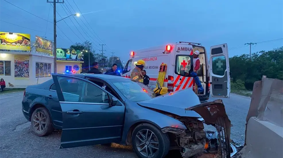 Al arribo de los paramédicos encontraron el auto Fusión verde con placas de Texas, que se impactó contra el muro de contención.