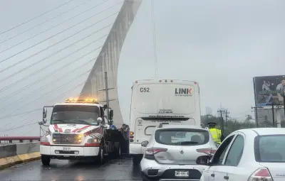 El accidente vehícular no dejó heridos pero si un gran derrame de aceite en el puente atirantado de la colonia del Valle.
