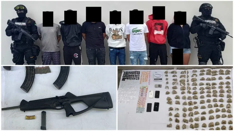 Fuerza Civil detuvo a 9 jóvenes con 5 armas de fuego de uso exclusivo del ejército mexicano y la realidad es que se les vio en flagrancia con las armas en la calle, en la mano y por esa razón se tuvo que procede.