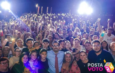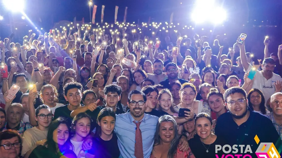 Cientos de santiaguenses se reunieron en el Parque La Leona para observar el debate a través de pantallas y mostrar su apoyo al candidato, quien se acercó a saludar a sus seguidores al término del encuentro.