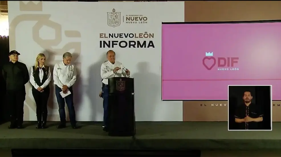 En conferencia de prensa en Nuevo León Informa, en encabezada por el Secretario General del Gobierno, Javier Navarro se hizo acompañar del director de agua y drenaje de Monterrey, Juan Ignacio Barragán, el secretario de seguridad, Gerardo Palacios Pámanes, la secretaria de Salud, Alma Rosa Marroquín y la directora del DIF Nuevo León, Gloria Bazán.