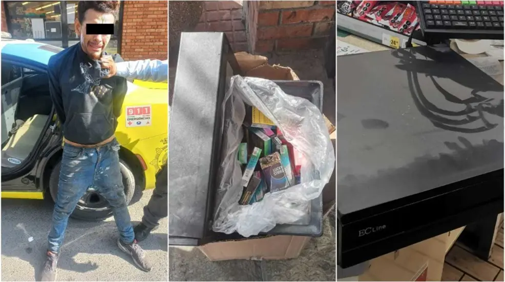 Al revisar al presunto ladrón, se encontraron en su bolsa las 47 cajas de cigarros y la caja registradora que llevaba consigo.La afectada identificó plenamente al hombre como el responsable del robo, por lo que solicitó su detención.