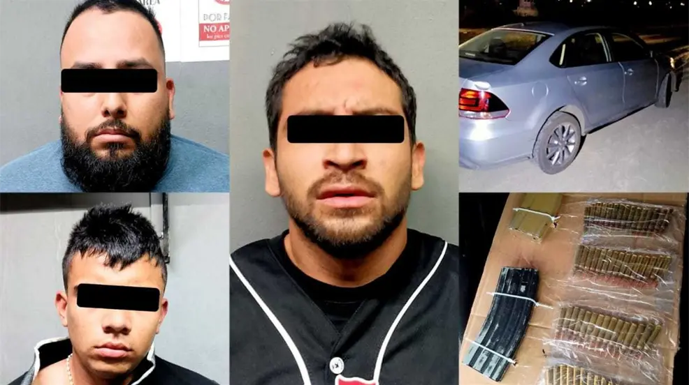 En la cajuela del auto transportaban dos armas largas calibre .223 o R-15 con cargadores y cada uno abastecido con 30 cartuchos del calibre de cada fusil.