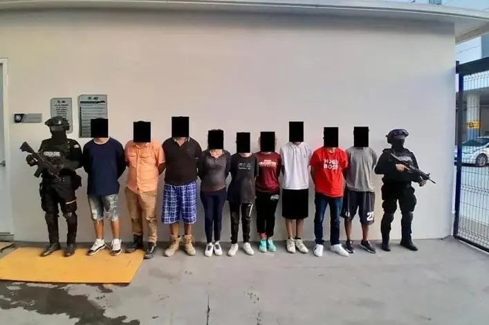 A los detenidos se les identificó como Jesús “N” de 22 años, Jonathan “N” de 19, Arely “N” de 25; Guadalupe “N”, de 23, Víctor “N”, de 18, Sandra “N” de 22, Óscar “N” de 37, Tadeo “N” de 19, Orlando “N”, de 23 y un menor de 17 años.