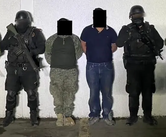 CHINA, Nuevo León.- Dos hombres armados fueron aprehendidos tras una operación conjunta llevada a cabo por elementos de Fuerza Civil, el Ejército Mexicano y la Guardia Nacional.
