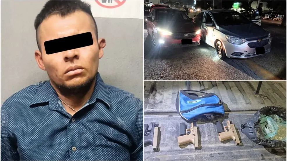 El individuo armado fue identificado como Christian, de 32 años, quien viajaba en un automóvil Aveo color gris. Durante la revisión que se le realizó, se encontró que portaba una pistola calibre 9 milímetros en la cintura del pantalón.