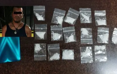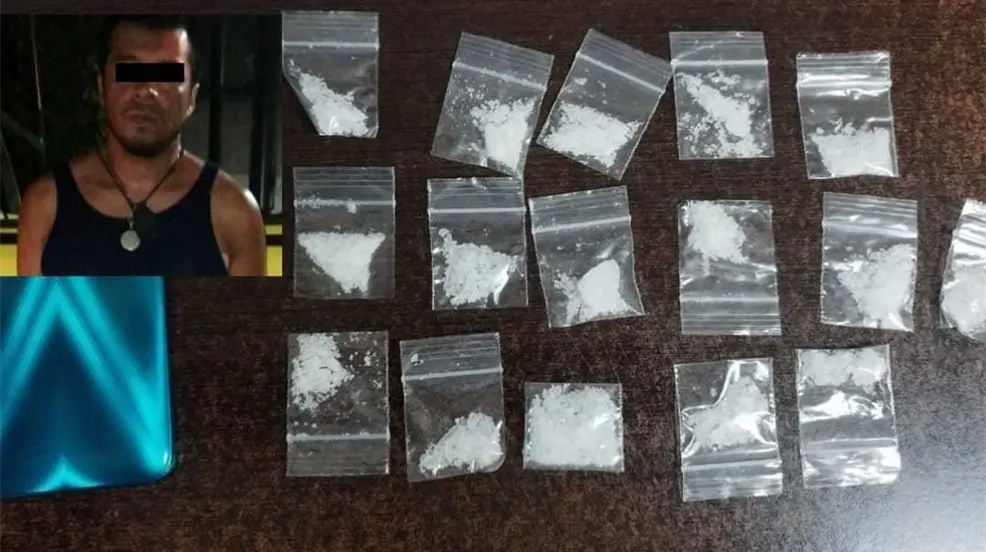 Al hacerle una revisión le hallaron 16 bolsas pequeñas la droga tipo cristal, por lo que fue trasladado a las instalaciones de la Policía de Monterrey, donde quedó a disposición de las autoridades competentes.