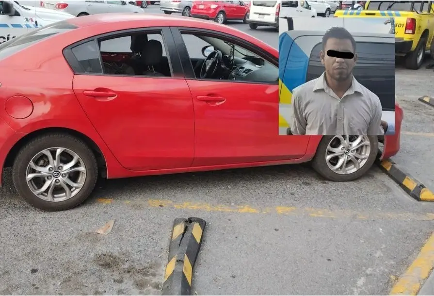 El presunto asaltante fue identificado conduciendo un Mazda rojo con placas SZT 685 A, el cual tenía reporte de robo en Juárez desde el 10 de abril.