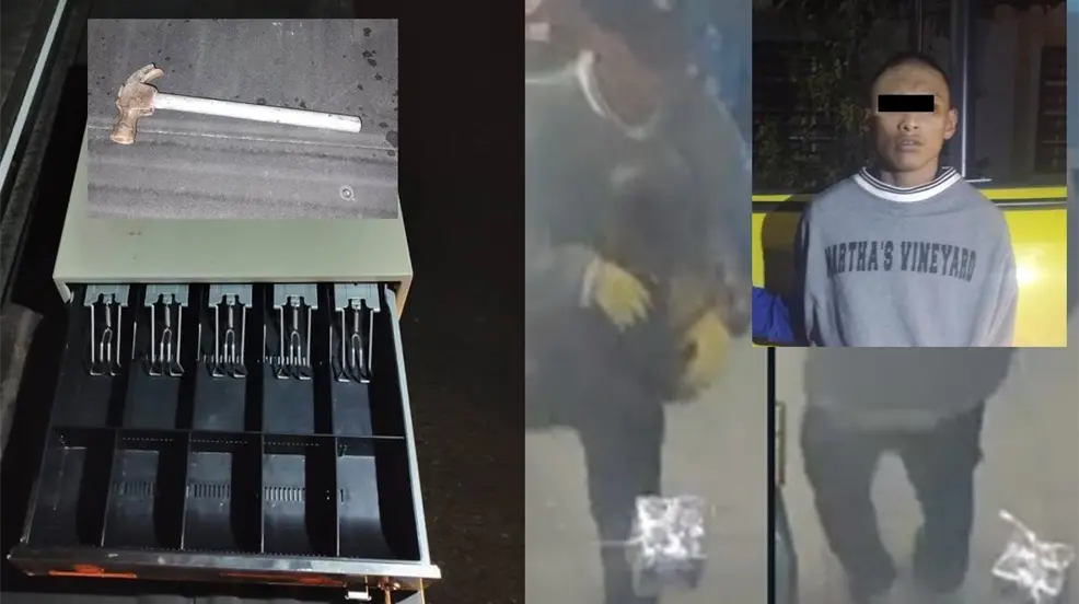 Ante esta situación, el empleado activó el botón de alerta conectado al C4i4 y se refugió en la bodega del establecimiento. Mientras tanto, el delincuente rompió el vidrio de la puerta con un martillo y se apoderó de la gaveta de la caja registradora.