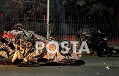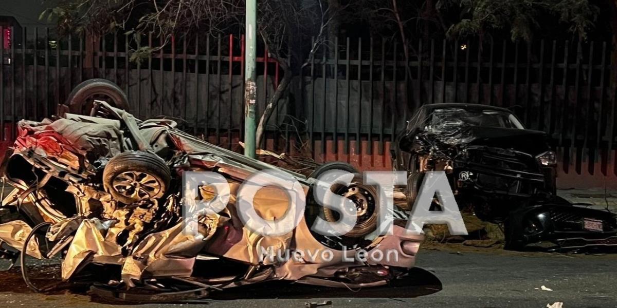 Un auto impacto a una patrulla y otro coche en la avenida Lincoln de Monterrey, lo que dejó como saldo personas heridas.