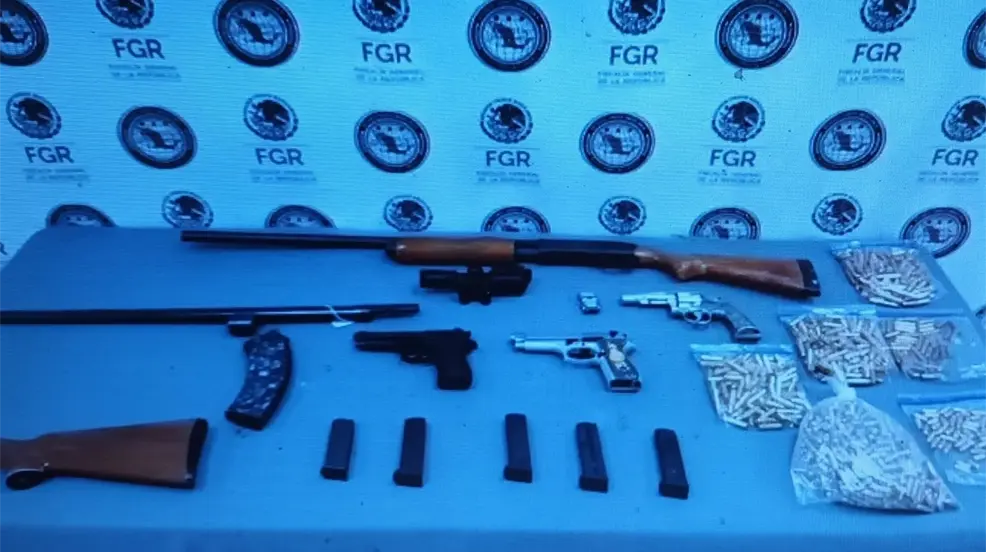 GALEANA, Nuevo León.- En un operativo policial llevado a cabo en San Roberto de Galeana, elementos de la Fiscalía General de la República lograron detener a un hombre identificado como Misael luego de encontrarle en su camioneta cuatro armas de fuego y una gran cantidad de cartuchos.