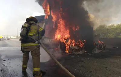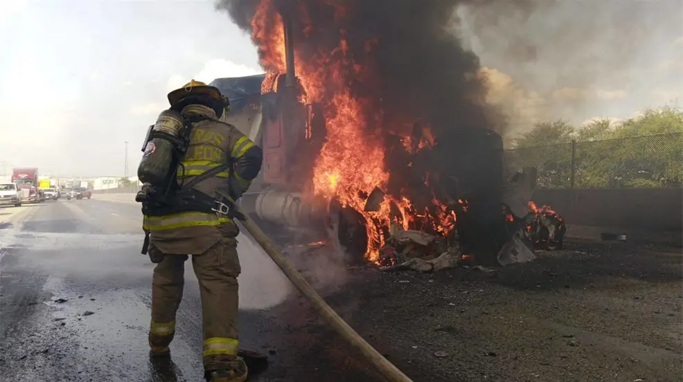 GARCÍA, Nuevo León.- La División Contra Incendios del municipio de García se encuentra atendiendo un reporte de incendio de un tráiler en el Libramiento Noreste a la altura de la empresa INCASA, trabajando de manera coordinada con los Bomberos Nuevo León.