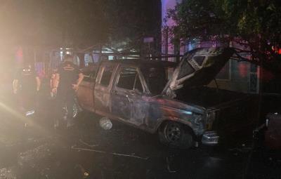 GUADALUPE, Nuevo León - Durante la madrugada, elementos de Protección Civil Nuevo León y el Patronato de Bomberos de Ciudad Guadalupe A.C. respondieron a un llamado de emergencia por el incendio de una camioneta en la colonia Alamedas de la Hacienda.