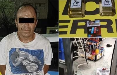 Un hombre que ocasionó daños y presuntamente sustrajo mercancía de una tienda de conveniencia, fue detenido por oficiales de la Policía de Monterrey.