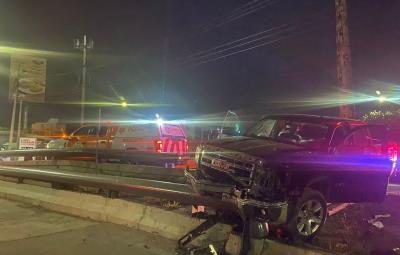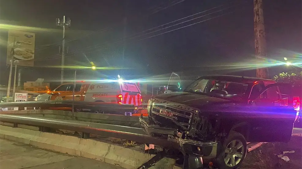 Impacta camioneta contra muro de contención en Monterrey