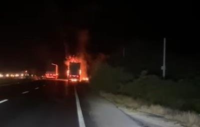 Incendio consume caja de un tráiler en Montemorelos