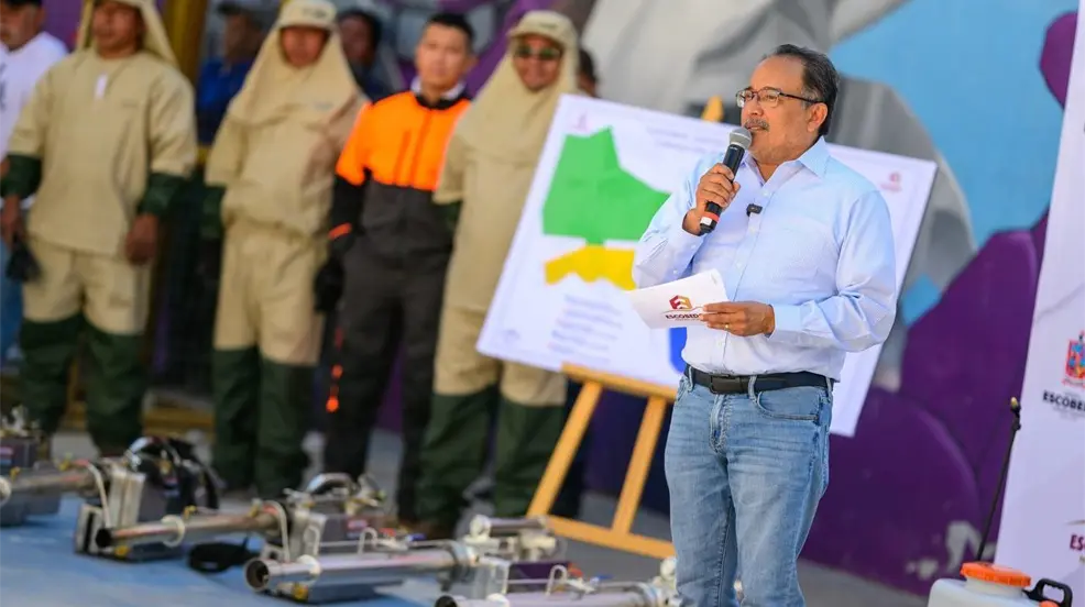 El alcalde Andrés Mijes dio inicio al operativo “Cuidemos juntos Escobedo: Campaña de fumigación contra el Dengue y Rickettsiosis” en la Colonia Alianza Real. Este plan abarcará todo el Municipio y se complementará con una campaña intensiva de descacharrización, orientada a prevenir enfermedades como el dengue, Zika, Chikungunya y Rickettsia.