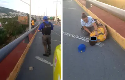 Joven es rescatado por Policía de Monterrey al intentar lanzarse de un puente