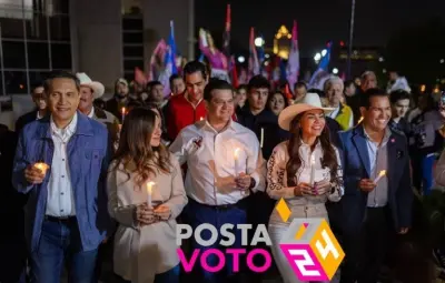 Acompañados de aspirantes a diputados federales y locales, así como las dirigencias de sus partidos, Karina Barrón (PRI) y Juan Carlos Ruíz (PAN) realizaron una caminata por la paz con velas.