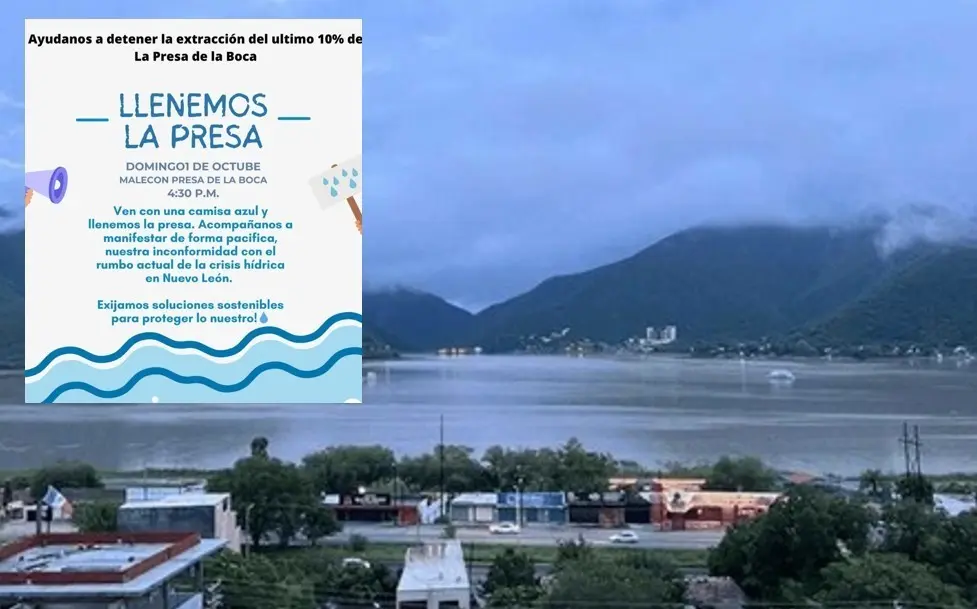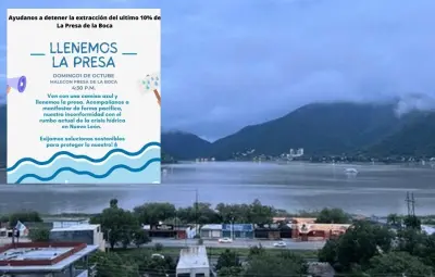 La protesta tendrá lugar el domingo 1 de octubre a las 16:30 horas en el Malecón de la Presa La Boca. El objetivo es exigir al Gobierno del Estado y a Agua y Drenaje de Monterrey que detengan la extracción de agua en este embalse, el cual actualmente tiene menos del 10 por ciento de su capacidad.