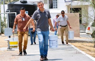 Los servidores públicos han llevado a cabo una labor encomiable, llenando cubetas con agua proveniente de la pipa y el tinaco de la Secretaría de Servicios Públicos, los cuales han sido reabastecidos con el vital líquido. Gracias a este esfuerzo, los ciudadanos que pertenecen a algún grupo vulnerable pueden contar con agua en sus hogares.
