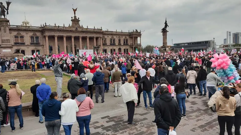 MONTERREY, Nuevo León.- Esta tarde más de diez mil personas se reunieron en la Explanada de los Héroes en el Palacio de Gobierno para manifestarse en contra de las reformas planteadas por el presidente Andrés Manuel López Obrador el pasado 5 de febrero.