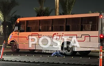 Presuntamente el conductor del trasporte de personal no lo ve y lo arrolló, es cuando al pasarle por arriba se detiene.
