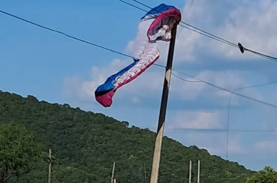 Mujer queda atrapada entre cables tras caer de paracaídas en Allende
