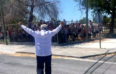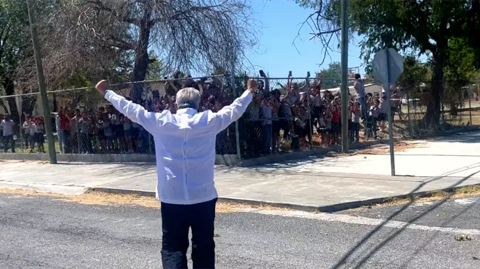 Niños de China, Nuevo León reciben a AMLO como rockstar