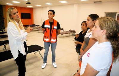 SANTA CATARINA, Nuevo León.- La presidenta del DIF Santa Catarina, Paola García Yves, mostró su compromiso con las familias vulnerables al recibir a las primeras personas albergadas debido a las lluvias provocadas por la tormenta tropical Alberto.