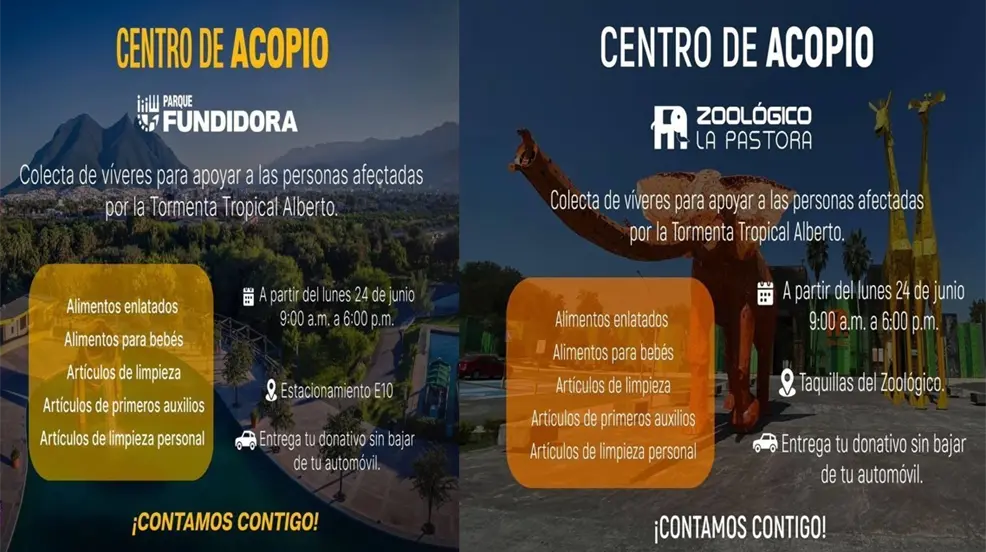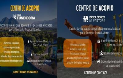Parque Fundidora y El Zoológico La Pastora se unieron para apoyar a las víctimas de la Tormenta 'Alberto', ambos parques establecieron centros de acopio para recolectar donativos.