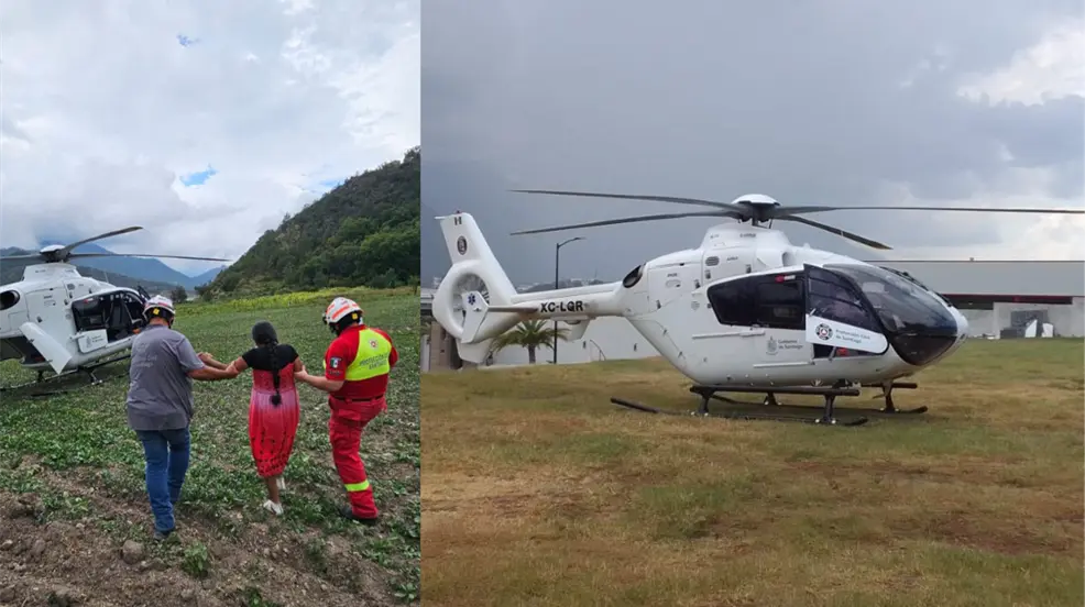 La mujer, de 30 años de edad, fue trasladada mediante un helicóptero de la corporación hacia la base, para luego ser llevada en ambulancia hacia el Hospital de Montemorelos.