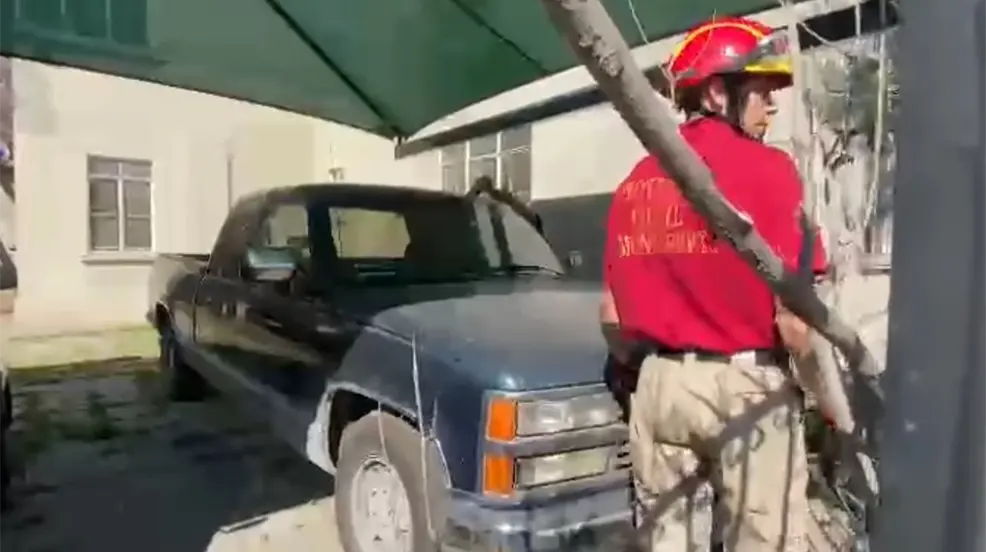 Una persona quedó atrapada al interior de un vehículo en la colonia Miravalle en Monterrey; rescatistas atienden el hecho.