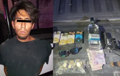 Los uniformados lograron darle alcance y realizaron una inspección física, encontrando dinero en efectivo, cajetillas de cigarros y alcohol en su mochila, así como un arma de fuego fajada en la cintura.
