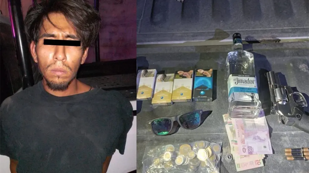 Jesús G., de 24 años, fue detenido y trasladado ante la autoridad competente para que responda por el delito de robo a comercio, portación de arma de fuego y otros cargos que resulten pertinentes.