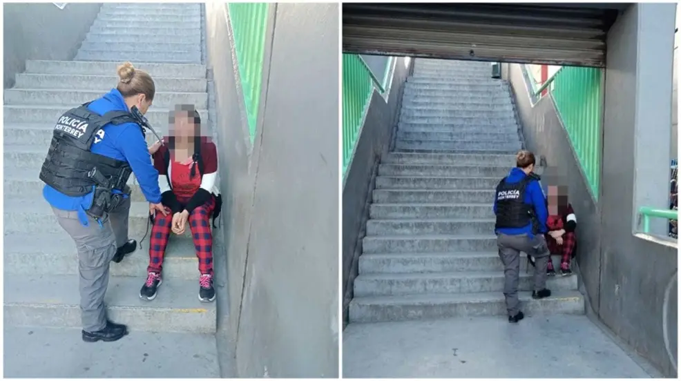 MONTERREY, Nuevo León.- Una joven de 18 años originaria de Veracruz fue auxiliada por oficiales de la Policía de Monterrey en el centro de la ciudad.