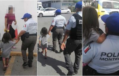 Policía de Monterrey encuentra a niña extraviada y la entregan a su mamá