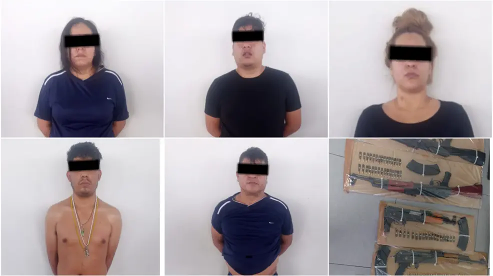 Los cinco detenidos, identificados como José Manuel “R” de 21 años, Abdel Karim “C” de 32 años, Francisco Javier “P” de 49 años, Yadira Elizabeth “P” de 32 años y Judith “M” de 39 años, fueron puestos a disposición del Ministerio Público para enfrentar los cargos correspondientes por privación ilegal de la libertad y portación de armas de fuego.